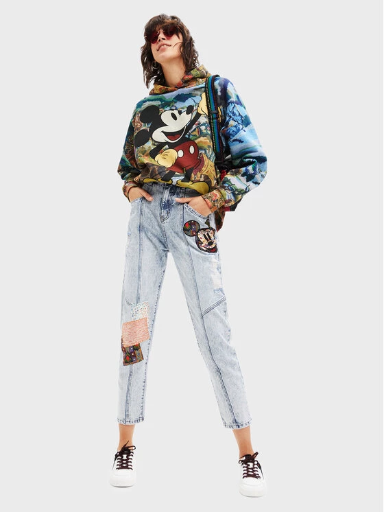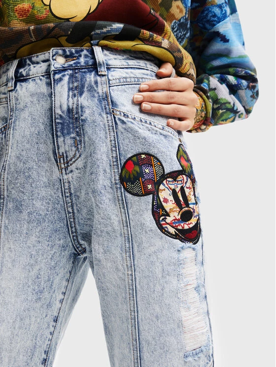 Desigual Γυναίκες Boyfriends Τζιν DISNEY Patch Mickey 22WWDD27 Μπλε Relaxed Fit