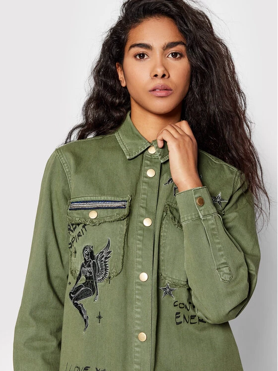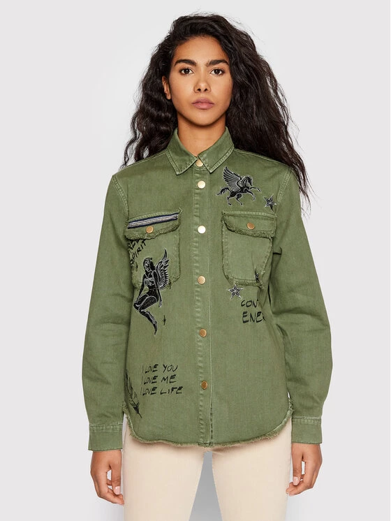 Desigual Γυναίκες Casual Πουκάμισα Πουκάμισο Pomora 22SWCN03 Πράσινο Oversize