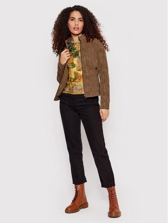 Desigual Γυναίκες Δερμάτινα Μπουφάν Μπουφάν από απομίμηση δέρματος Mar 22SWEW30 Καφέ Regular Fit