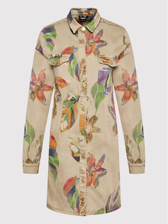 Desigual Γυναίκες Φορέματα σε Στυλ Πουκάμισο & Σεμιζιέ Φόρεμα πουκάμισο Budapest 22SWVN03 Μπεζ Regular Fit