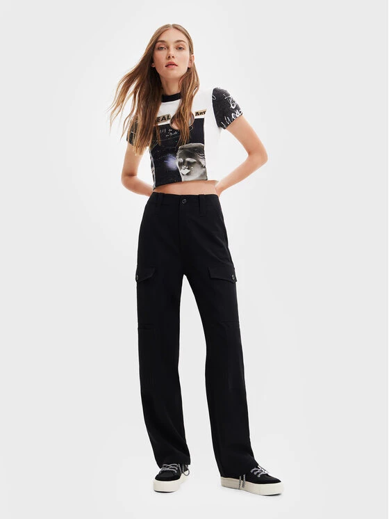 Desigual Γυναίκες Υφασμάτινα Παντελόνια Παντελόνι υφασμάτινο MONSIEUR CHRISTIAN LACROIX Jo 22WWPW22 Μαύρο Relaxed Fit