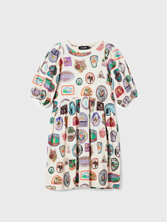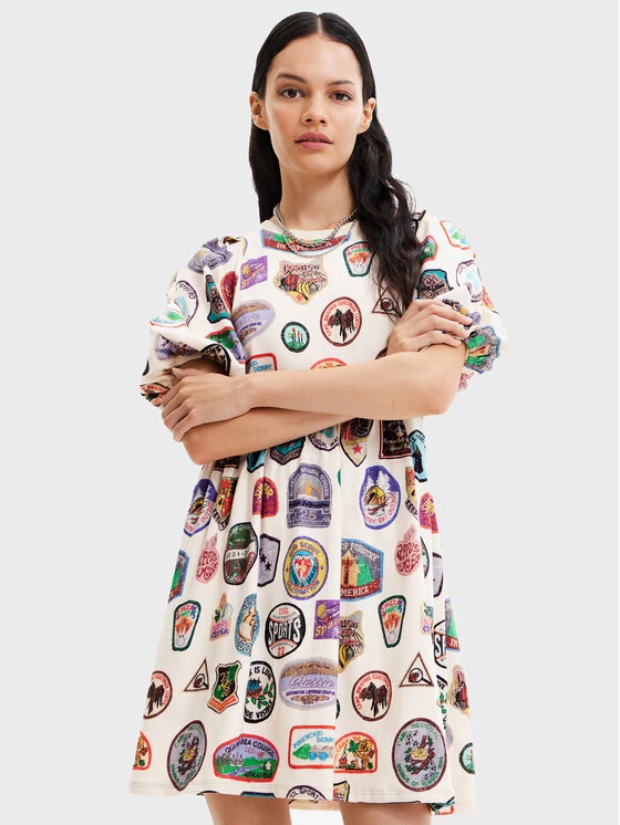 Desigual Γυναίκες Καθημερινά Φορέματα Φόρεμα καθημερινό Stamps 22WWVK73 Μπεζ Regular Fit