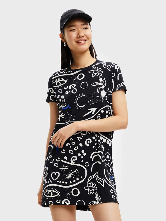 Desigual Γυναίκες Καθημερινά Φορέματα Φόρεμα καθημερινό Symbols 22WWVK70 Μαύρο Regular Fit