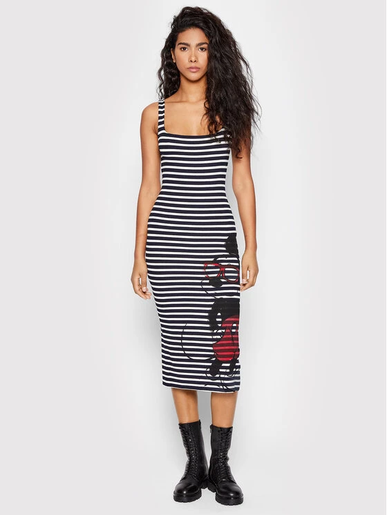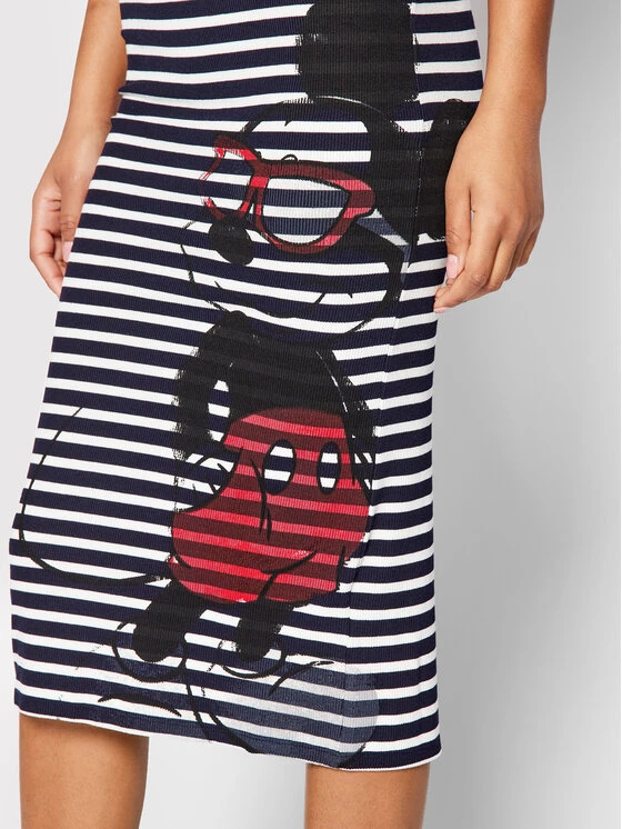 Desigual Γυναίκες Πλεκτά Φορέματα Φόρεμα υφασμάτινο DISNEY Mickey Sunglasses 22SWVK40 Μαύρο Slim Fit