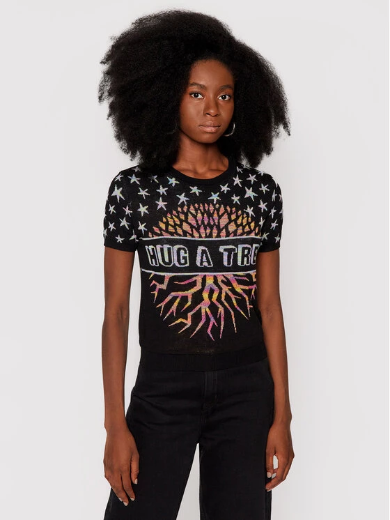 Desigual Γυναίκες Πουλόβερ Hug A Tree 21WWTK54 Μαύρο Regular Fit