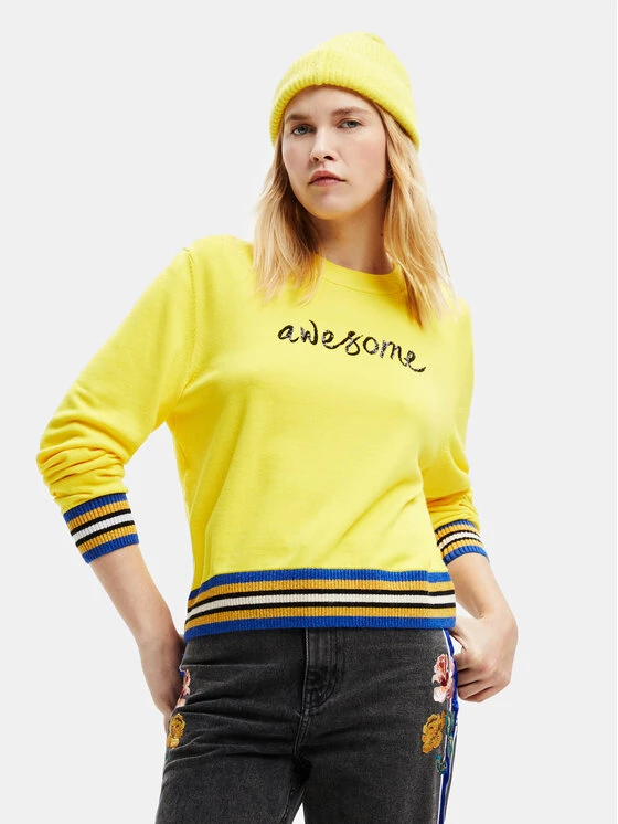 Desigual Γυναίκες Πουλόβερ Mara 22WWJF15 Κίτρινο Regular Fit