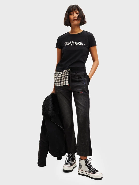 Desigual Γυναίκες Straight Leg Τζιν Ursula 22WWDD63 Μαύρο Regular Fit