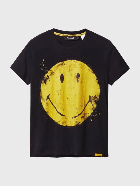 Desigual Γυναίκες T-shirts T-Shirt SMILEY Ria 22WWTKAJ Μαύρο Regular Fit